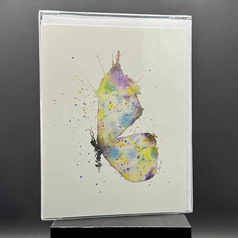 "Splendor" greeting cards and note cards crafted from original watercolor art. Greeting (5" x 7") and note card (4.25" x 5.5") sizes available. Cards are blank inside, add your own message. Each card includes white envelope. Greeting cards suitable for framing, front image fits nicely inside standard 5x7 photo frame and mats. Individually wrapped in clear protective sleeve or sets packaged in clear protective box.